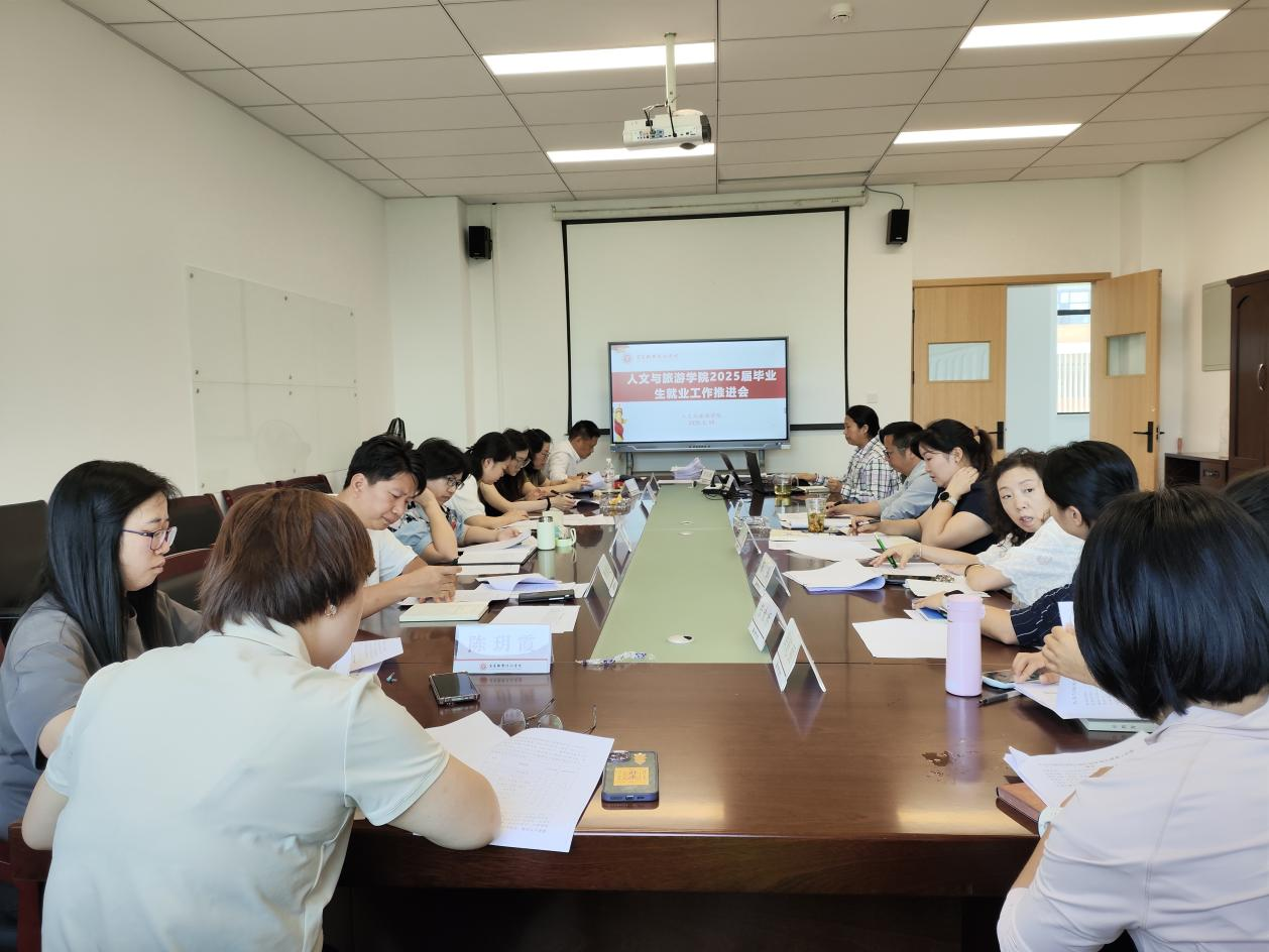 2025年5月19日,人文与旅游学院组织召开2025届毕业生就业工作推进会,全面部署毕业生就业冲刺阶段重点工作。学院领导、各专业就业联络员、毕业班辅导员参会,会议由人文与旅游学院党支部副书记杨维达主持。