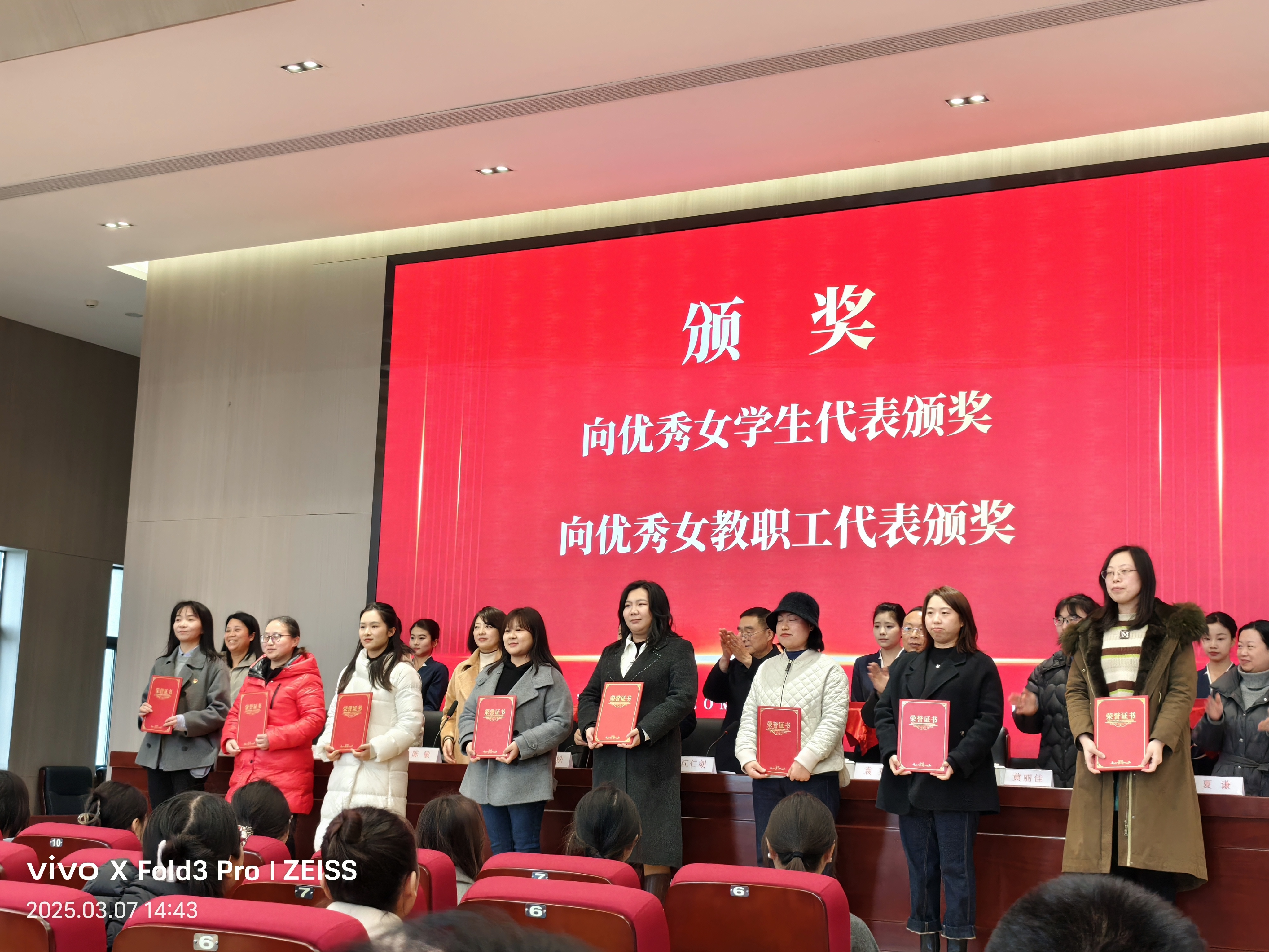 随后,学校对49名优秀女教师和我院91名优秀女学生代表进行了表彰。她们在各自的工作和学习岗位上,兢兢业业,奋发有为,为学校的发展做出了积极贡献,是全校师生学习的榜样。