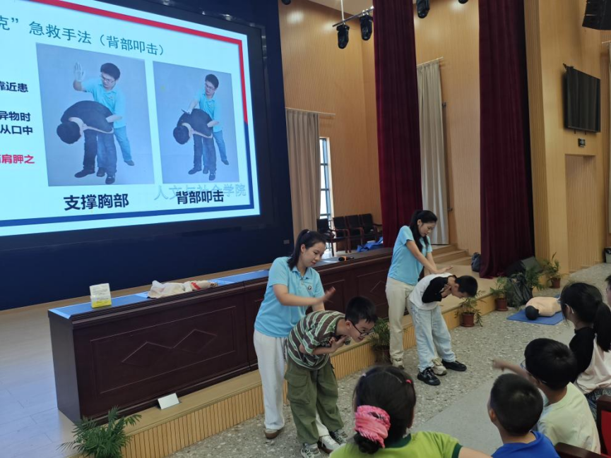 2025年9月28日,婴幼儿托育服务与管理专业教师阳璐西、彭祎昀老师联合长江学校开展“童伴守护,急救先行”主题急救小知识讲座,长江学校一年级五班、一年级六班及三年级八班的同学们齐聚一堂,在轻松互动中学习实用急救技能。