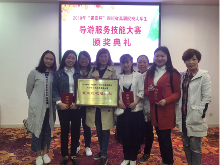2018年4月13日至14日,2018年“巽震杯”四川省高职院校大学生导游服务技能大赛在成都职业技术学院花源校区举行,来自全省36所高职院校共104位选手参加本次比赛。我院经济贸易管理系旅游管理专业11502班杨鑫同学 ,11601班刘洁同学,11602班李凤同学通过紧张角逐,层层淘汰,最终在众多选手中脱颖而出,分别荣获三等奖。学院获得大赛最佳学院组织奖!