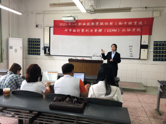 5月28日至29日,1+X研学旅行策划与管理职业技能(初中级贯通)考试在实训楼计算机2室、教学楼1209教室举行。旅游管理专业2019级40名同学参加了此次考试。