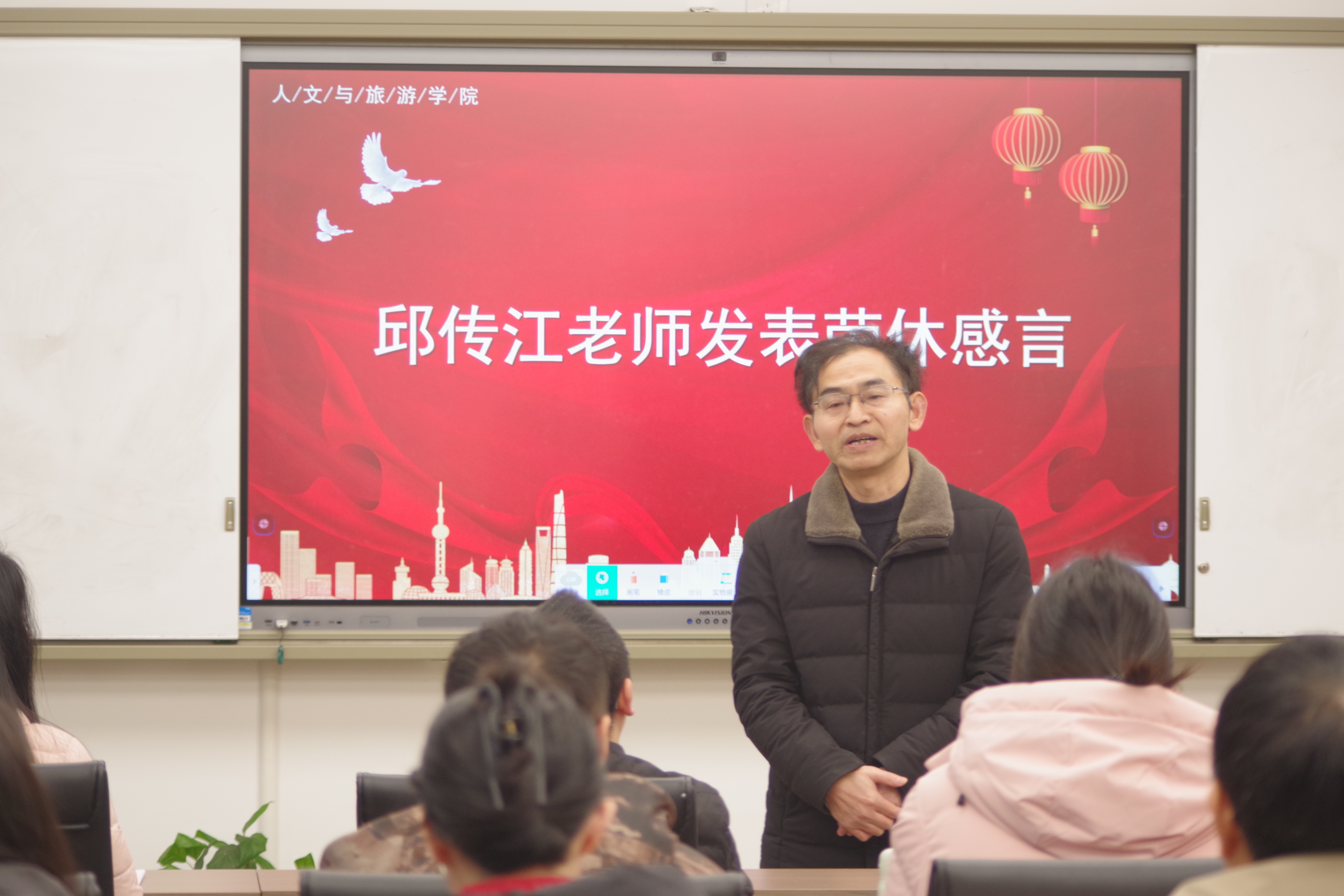12月18日上午,人文与旅游学院在芥子苑306室隆重举行了邱传江老师的退休仪式。此次仪式不仅是对邱老师多年辛勤付出的肯定,也是对他教育生涯的深情致敬。