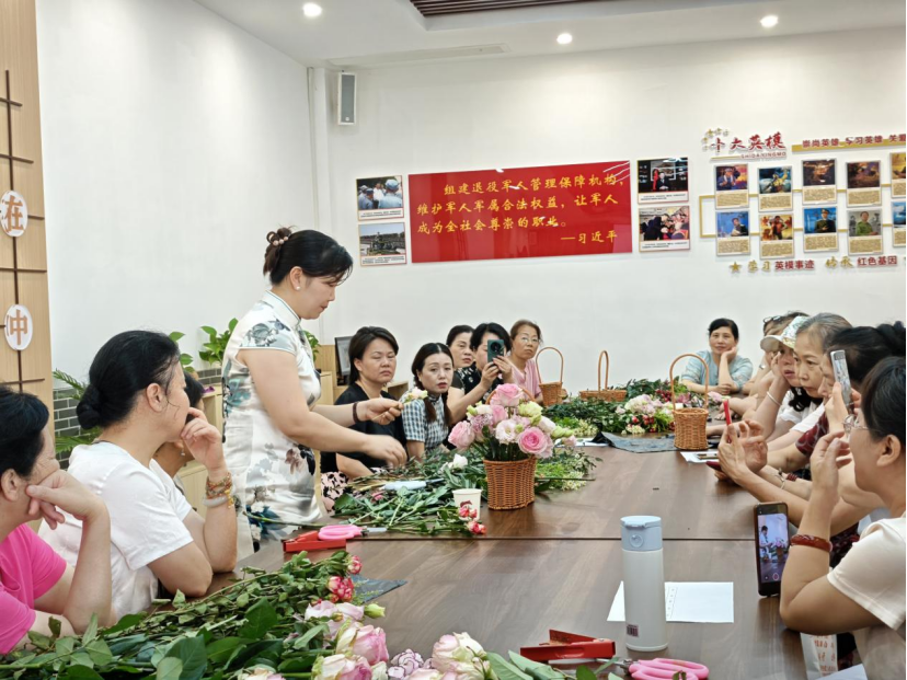 6月19日上午,我院在罗龙街道红光社区居民委员会的邀请下,园林技术专业陈俊副教授前往红光社区活动中心开展了一次以“闻香知女人”为主题的公益插花花艺讲座。本次活动吸引了 30 余名社区女性居民踊跃参加,以艺术为媒助力女性成长,为基层社区妇女搭建起提升审美素养、展现创造力的新平台。