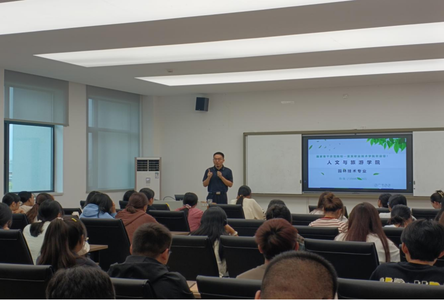 活动开始,园林教研室主任陈俊老师为新生们做了专业介绍。从园林专业的办学特色、课程设置、就业方向、竞赛成果、学生活动等多个方面进行了系统阐述,使同学们对所学专业有了初步的、整体性的认识,激发了大家对专业学习的兴趣与期待。