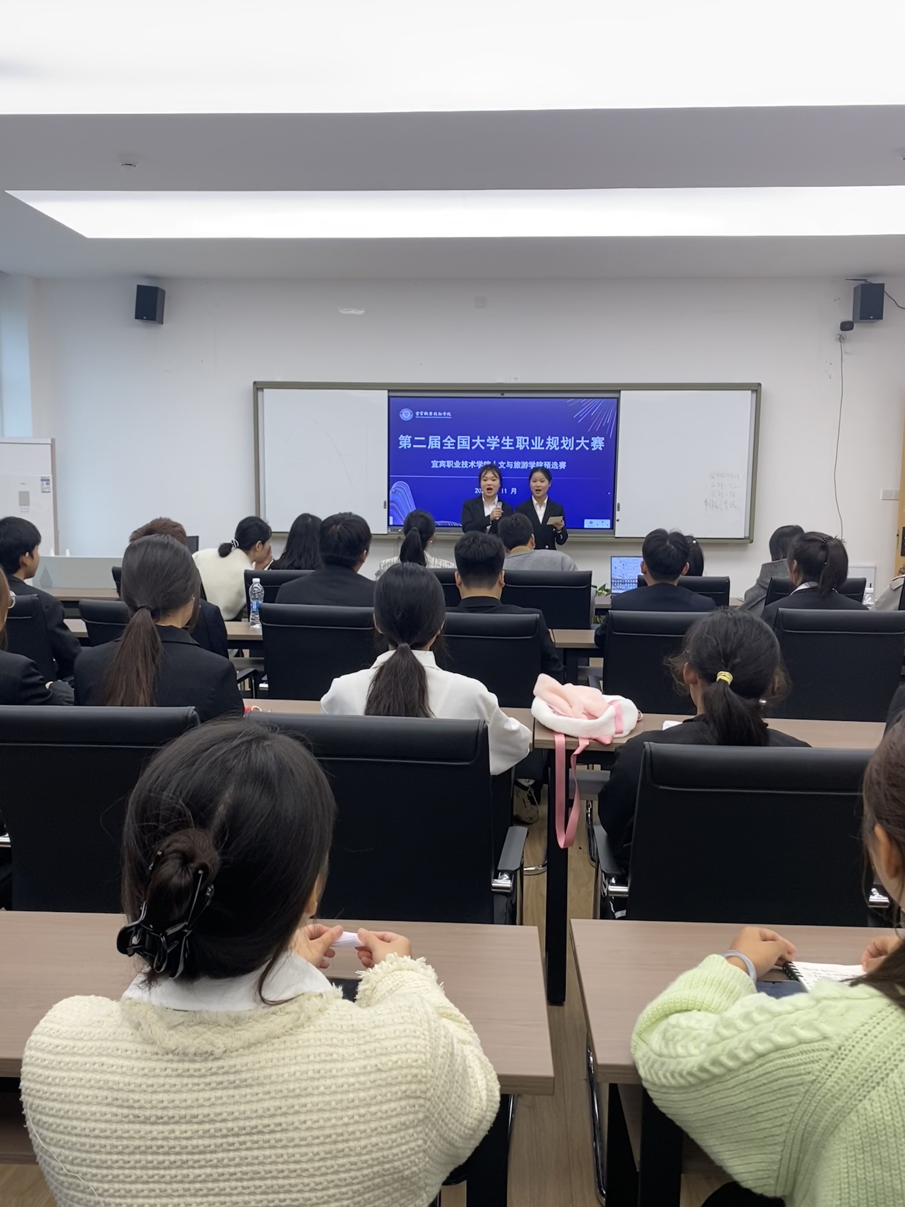 第二届全国大学生职业规划大赛宜宾职业技术学院人文与旅游学院预选赛在芥子苑热烈展开,大赛以“筑梦青春,规划启航”为主题,分为成长赛道与就业赛道两大板块,共计29名选手参与本次比赛。