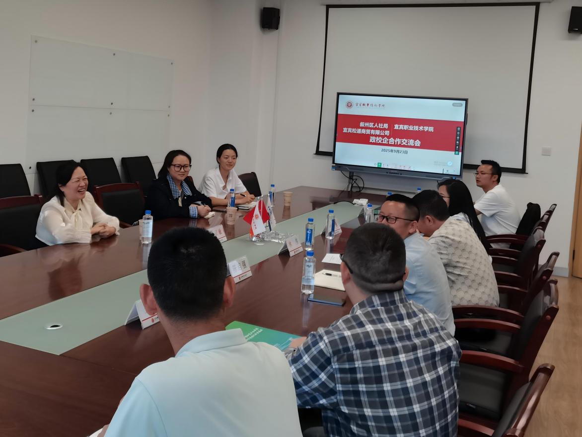 9月23日,我校与叙州区人社局、宜宾松通商贸有限公司的政校企合作交流会在芥子苑314会议室举行。宜宾市叙州区人社局杜灵敏,宜宾松通商贸有限公司人力资源部经理罗晓燕、办公室主任罗明,人文与旅游学院院长林伟等相关人员参加交流会,人文与旅游学院副院长陈启强主持座谈会。