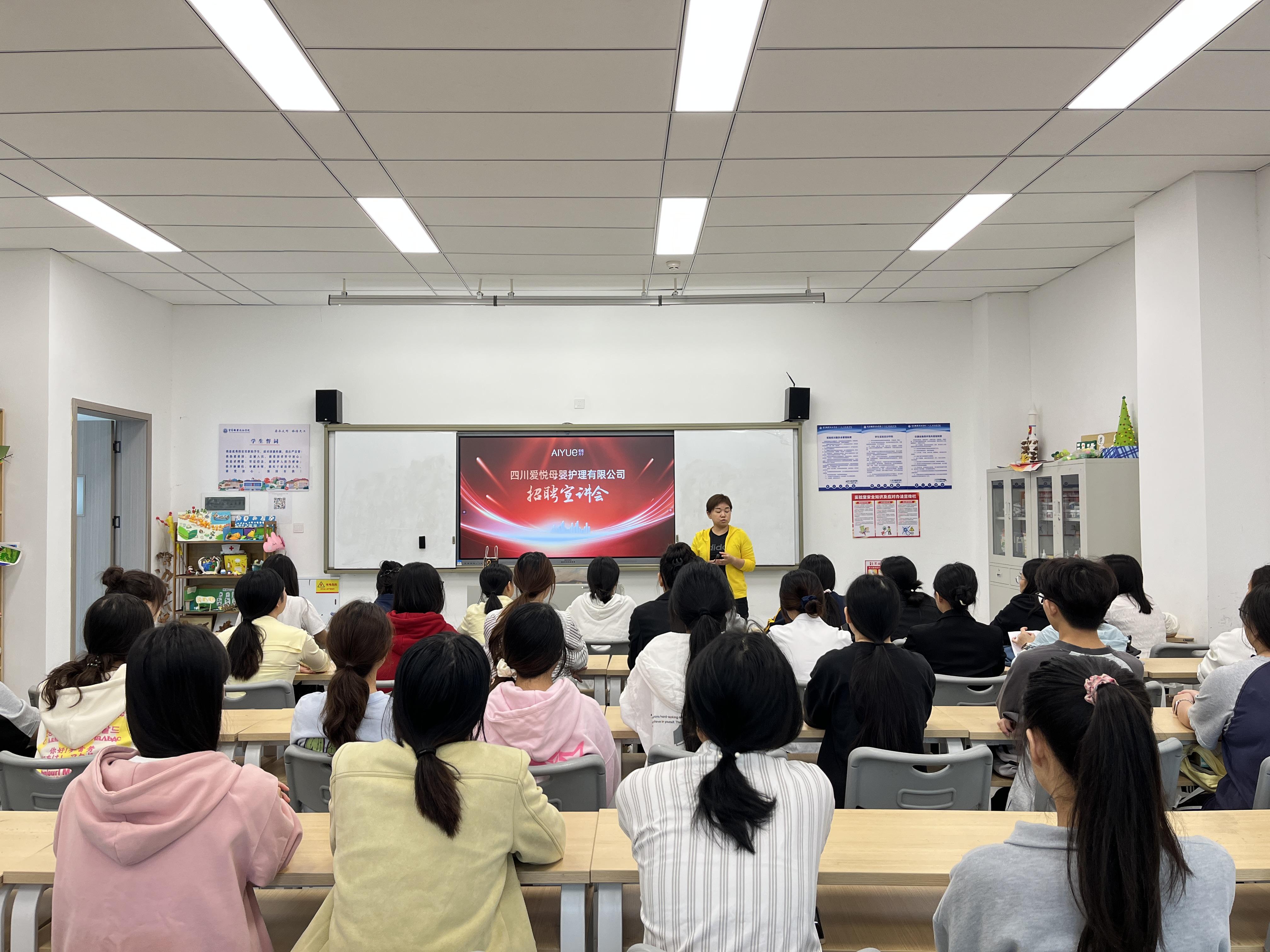为深化校企合作、精准吸纳专业人才,2025年10月13日,四川爱悦母婴护理有限公司(以下简称“爱悦企业”)走进宜宾职业技术学院,聚焦婴幼儿托育服务与管理专业大三共124名学生,在文华苑101教室开展母婴护理师岗位专场招聘活动。活动通过“企业宣讲+现场面试”的高效流程,实现企业人才需求与学生就业诉求的精准对接,为行业人才输送与院校就业工作注入新动能。