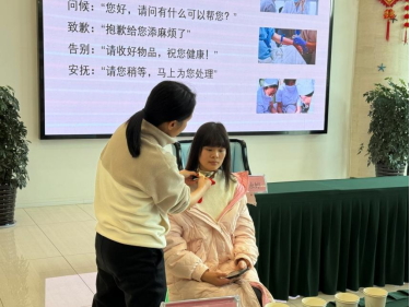 培训团队采取“理论引导+现场示范+实操训练”的模式,确保培训内容听得懂、学得会、用得上。在理论环节,彭祎昀老师系统讲解了通用社交礼仪与岗位专项礼仪,重点强化医护人员沟通技巧、窗口服务流程及引导礼仪规范。实操教学中,喻永婷老师聚焦职业形象塑造,手把手指导参训人员掌握领带、领结的标准系法,并针对女性员工开展简洁得体发型梳理教学。课程内容紧贴工作实际,强调专业形象与操作便捷的统一,参训人员积极动手练习,在互动中提升岗位形象塑造能力。
