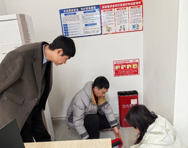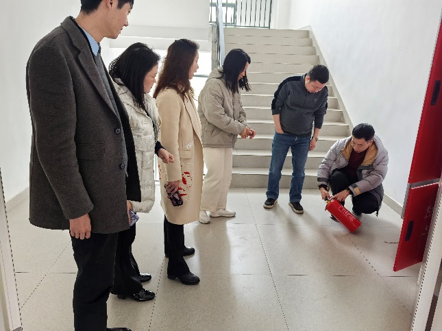 人文与旅游学院院长林伟、副院长曹芳、安全员曾道金、实验员李建春、周祥、程讴老师一起于2025年3月13日下午14时30分组织了芥子苑、文华苑消防大检查,并开展了消防器材使用培训工作。