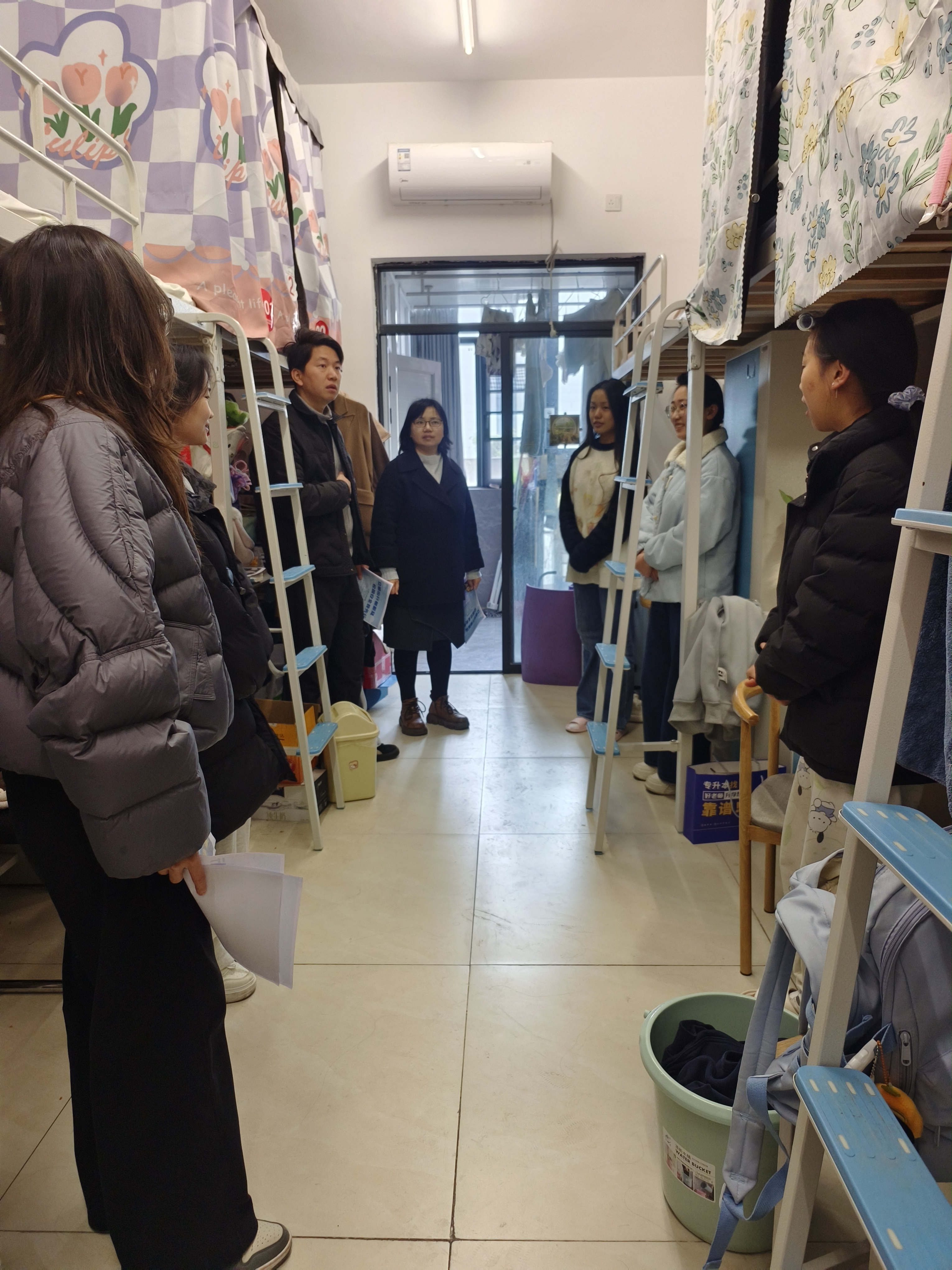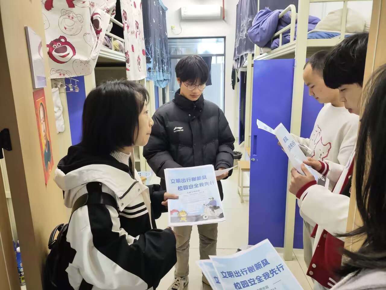 活动中,院领导与辅导员分组走访学生寝室,向同学们发放《校园电瓶车安全骑行指南》,并结合近期校园骑行案例,详细讲解交通规则遵守、安全头盔佩戴、禁止超速超载等注意事项。党总支书记李璟强调:“安全无小事,文明出行既是对自身负责,也是对他人生命的尊重。希望同学们从细节做起,共同营造安全有序的校园环境。”