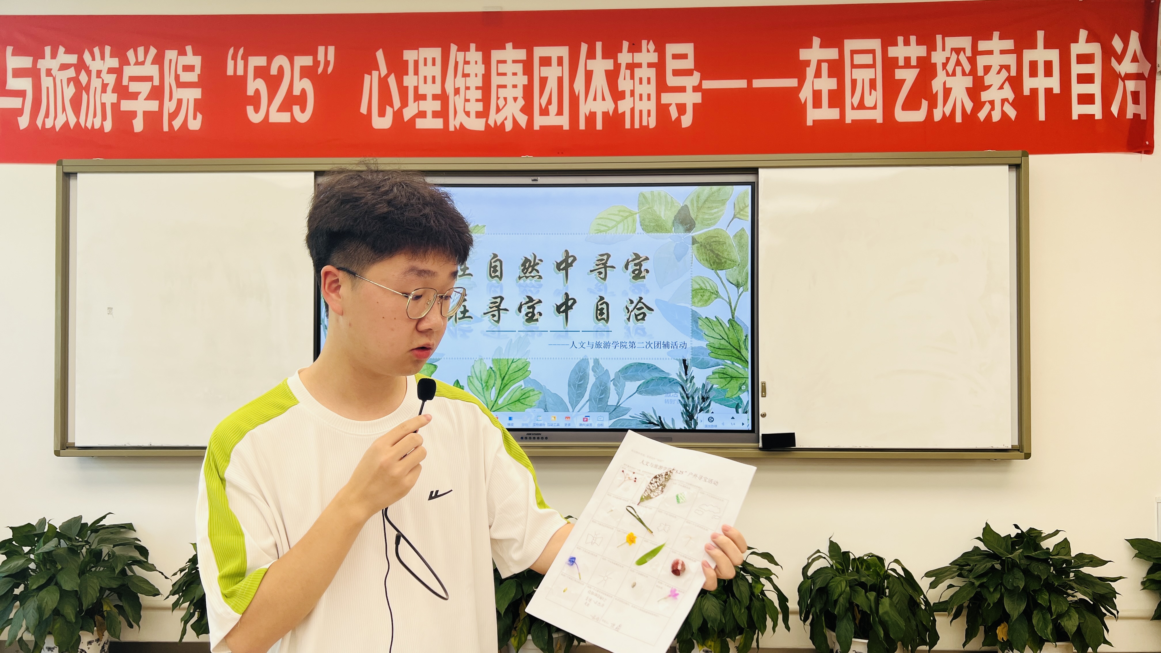 在繁忙的学习生活中,如何寻找内心的平静与自洽成为了大学生们面临的重要课题。为响应“525”全国大学生心理健康日,人文与旅游学院于近日成功举办了一场别开生面的心理健康教育团体辅导活动——“园艺探索中找寻心灵的自洽”。