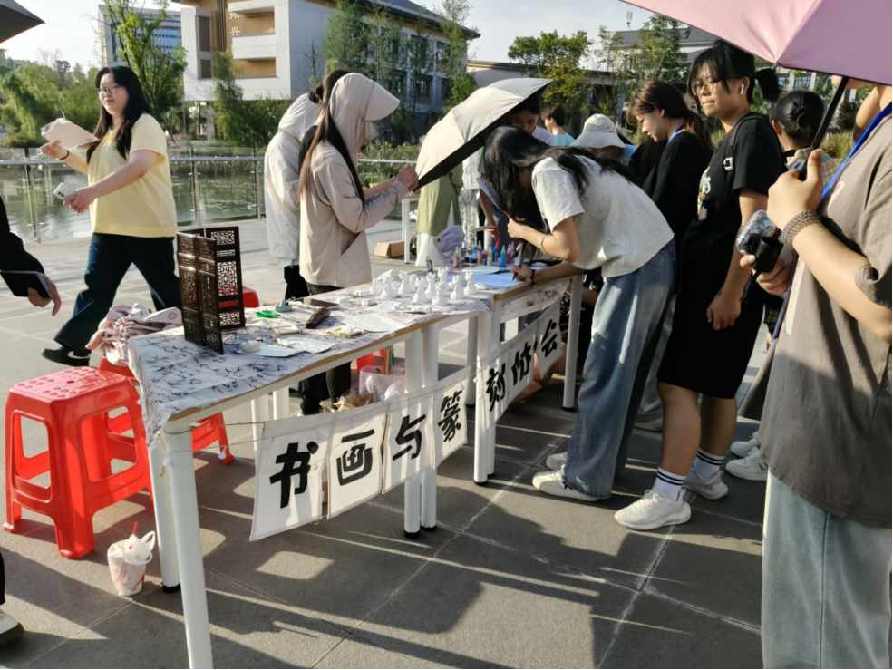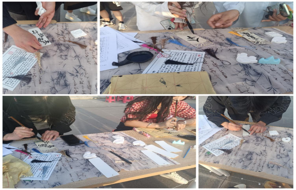 为了让更多人亲身体验书画的乐趣,活动设置了多个互动体验区。在书画体验区,参与者们在专业老师的指导下,拿起毛笔,尝试书写简单的汉字和绘制简单的图案。从最初的生疏到逐渐熟练,大家在笔墨间找到了乐趣和自信。一位同学在完成自己的书法作品后兴奋地说:“以前觉得书法很难,今天在老师的指导下,发现自己也能写出这么漂亮的字,真的太有成就感了!”脸上洋溢着满足的笑容。